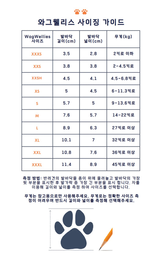 와그웨어 '첫 주문' 시 스타일과 색상 그리고 사이즈 를 어떻게 입고해야 될지 고민 되시나요? 우리나라 대중적인 반려견 기준 소형견은 XXS, XXSH 사이즈가 가장 많이 판매 되며, 대형견 기준 L, XL 가 가장 많이 판매 됩니다! 주문에 도움이 되시길 바라며 사이즈 또는 색상 선택에 상담이 필요하시면 언제든 이메일 또는 전화 (02-792-4056)로 문의 주시기 바랍니다.